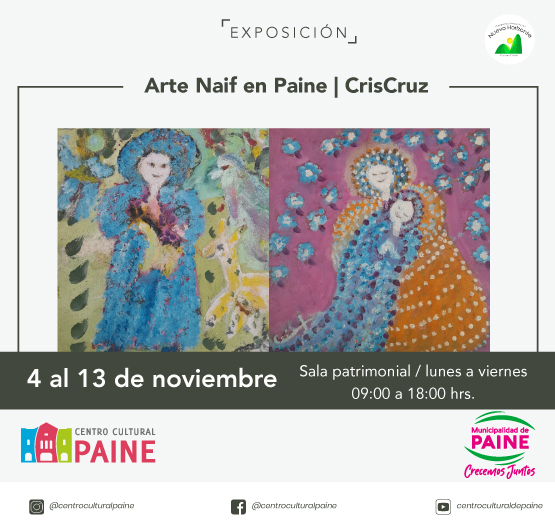 La exposición "Arte Naif en Paine| CrisCruz", es a la vez una muestra póstuma y la primera exposición de la artista CrisCruz.